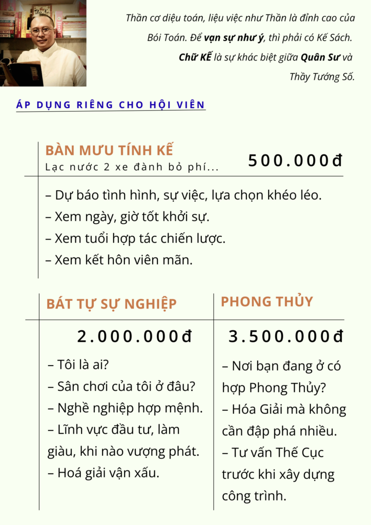 + Tư vấn định hướng đầu tư và lựa chọn lĩnh vực phù hợp với mệnh lý cá nhân.